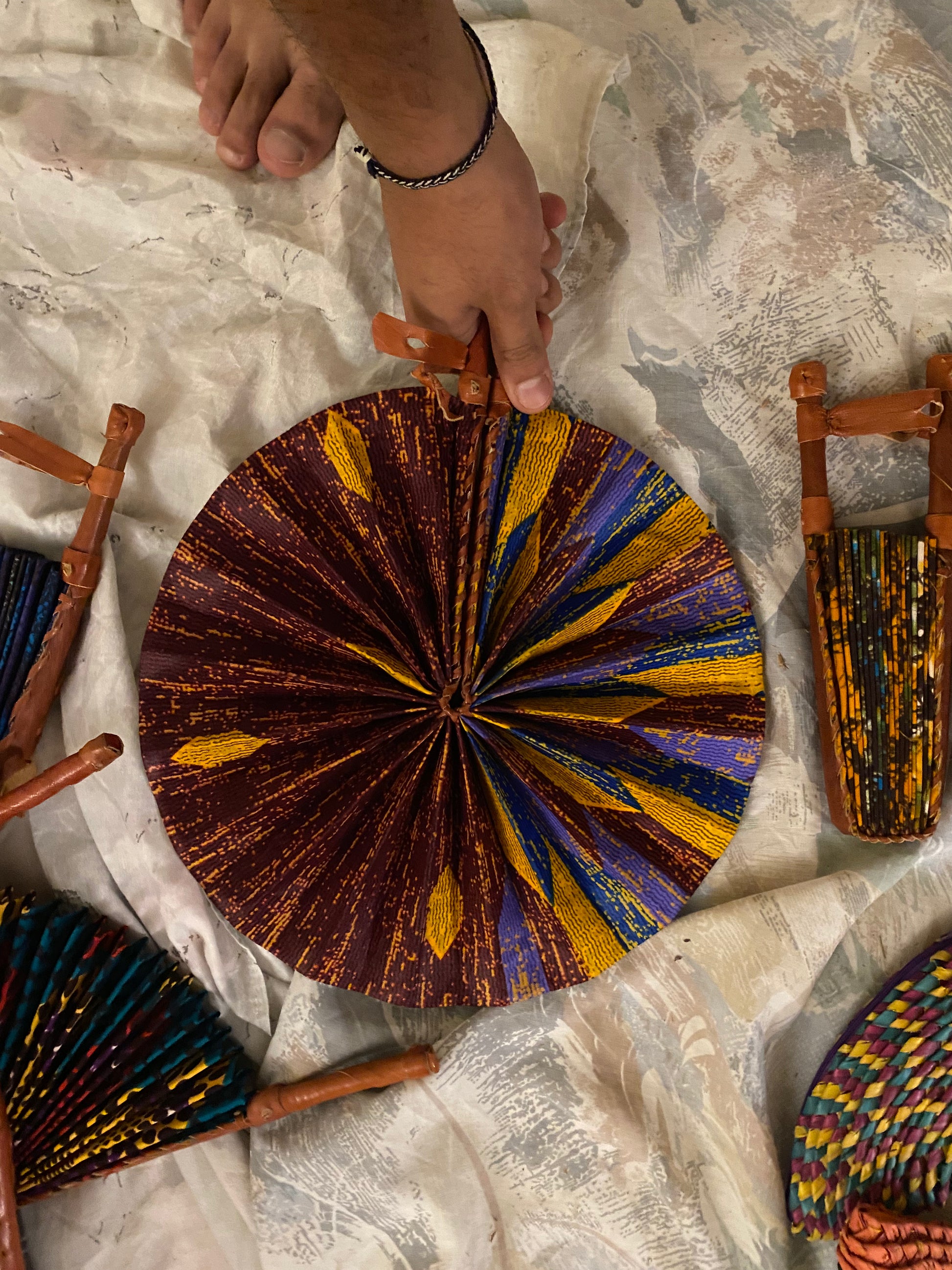 Amani Kenyan Leather Hand Fan