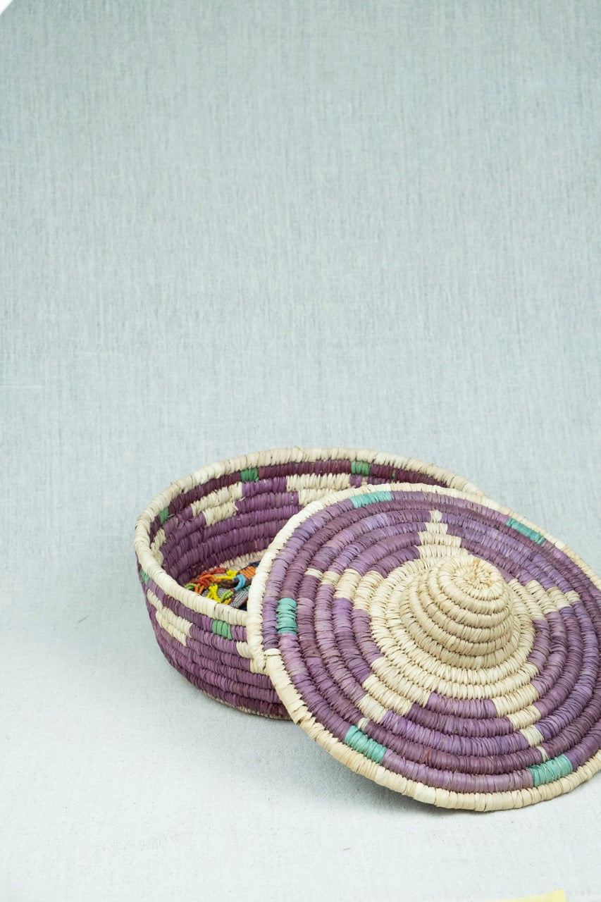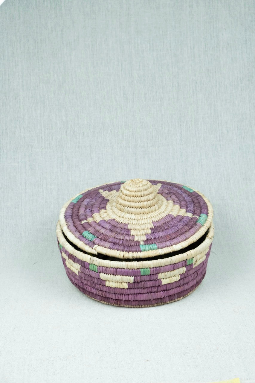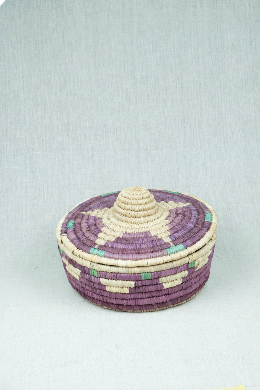 The Sahara Star Round Container is a stylish home storage solution handcrafted from palm wicker, inspired by Nubian design aesthetics. Featuring a secure lid, it offers practical organization while adding an authentic, artisanal touch to your living space. Perfect for those seeking durable, elegant storage with cultural flair.