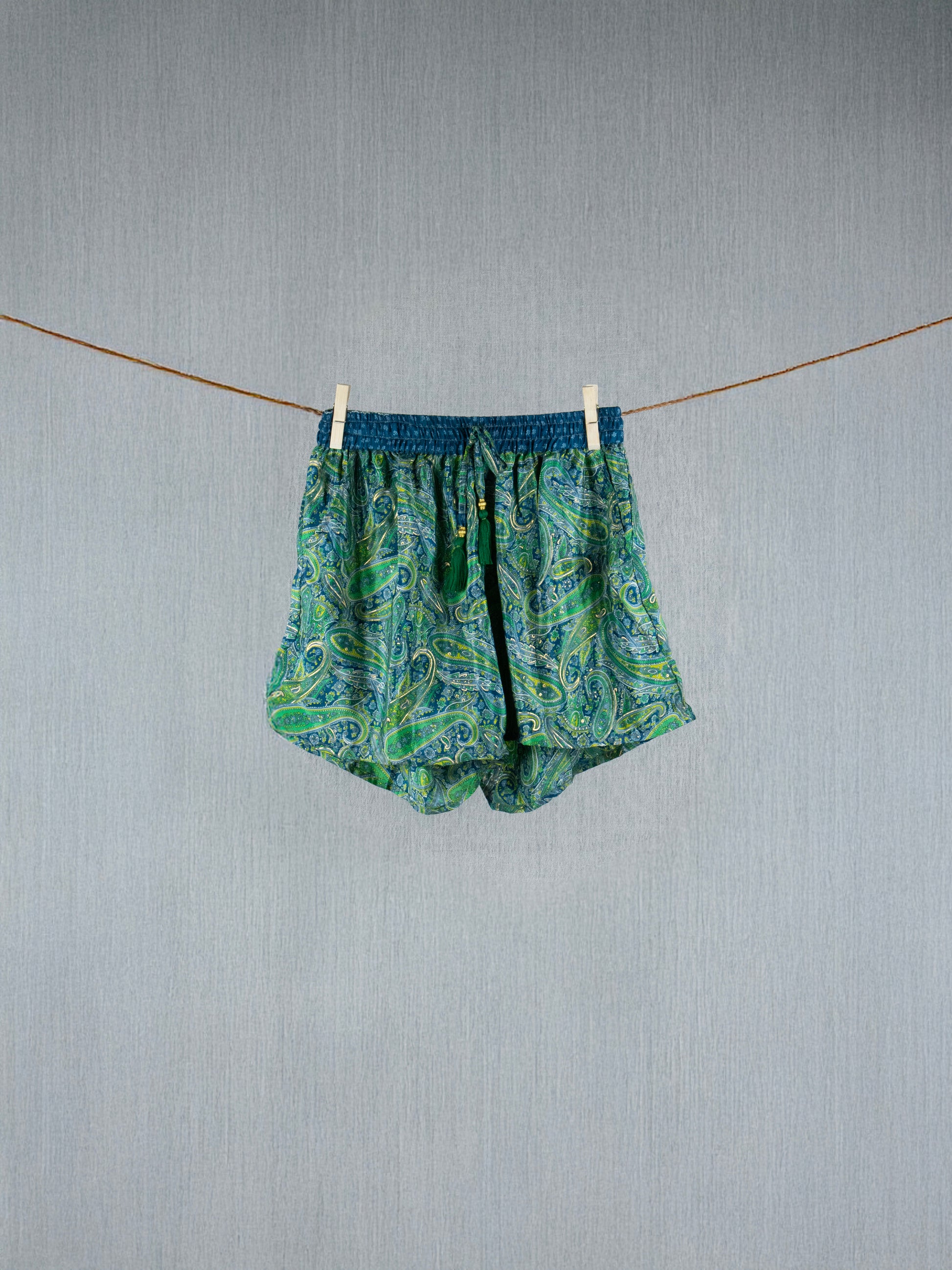 Lime Light Crepe Silk Shorts - with golden prints