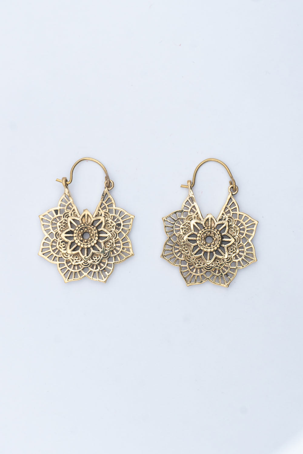 Tie your look together with these stunning Mandala Floral Hoop Earrings! Featuring a unique Indian design, these hoops are crafted from brass and will add a splash of statement style to any ensemble. You'll look dope wearing them, we promise!