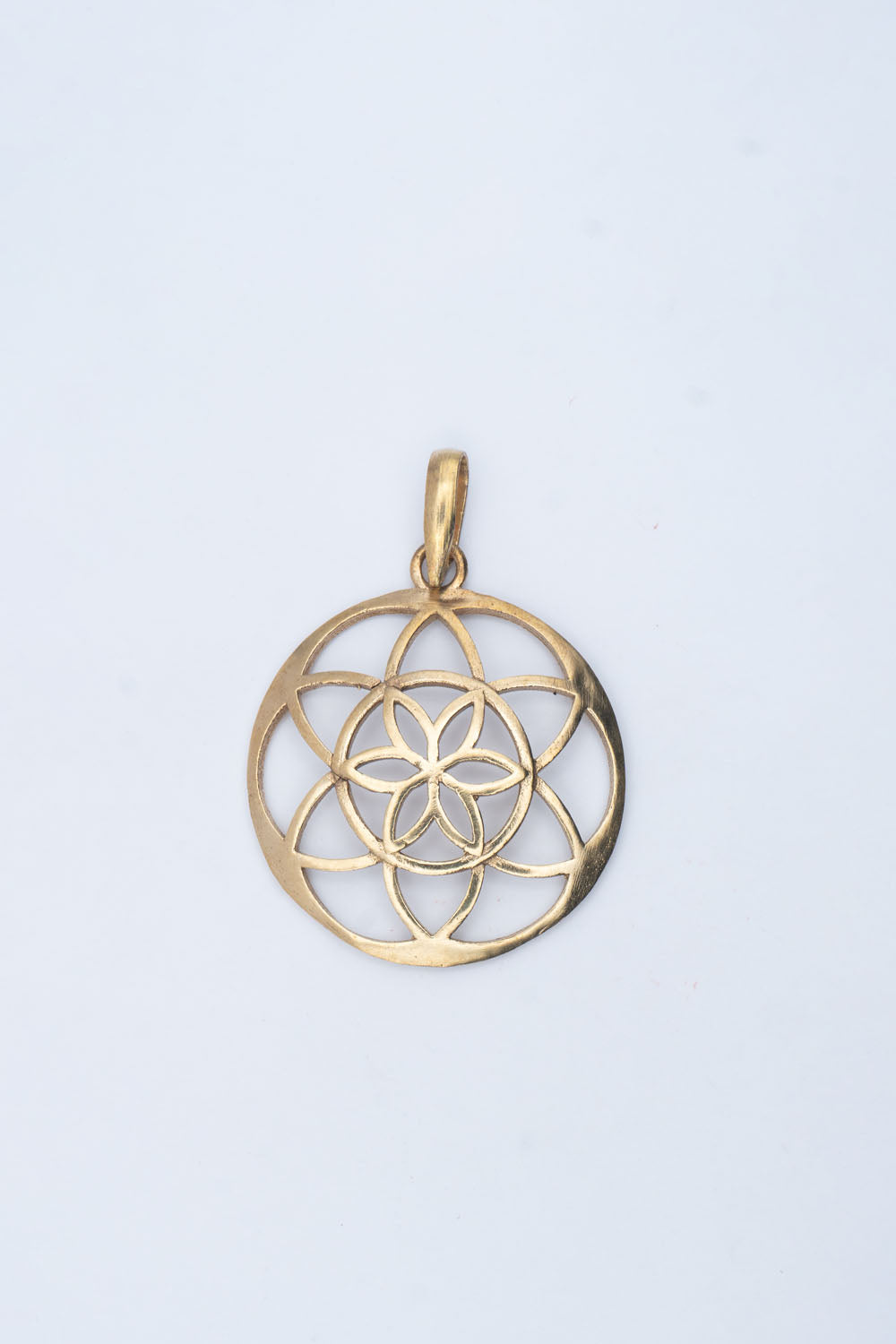 The perfect addition to your jewelry collection, this Seed of Life pendant is sure to be a conversation starter! Crafted from brass from India, this pendant is nonallergic - no lead, nickel, or cadmium to be found here! Spinnin' class, no stress.