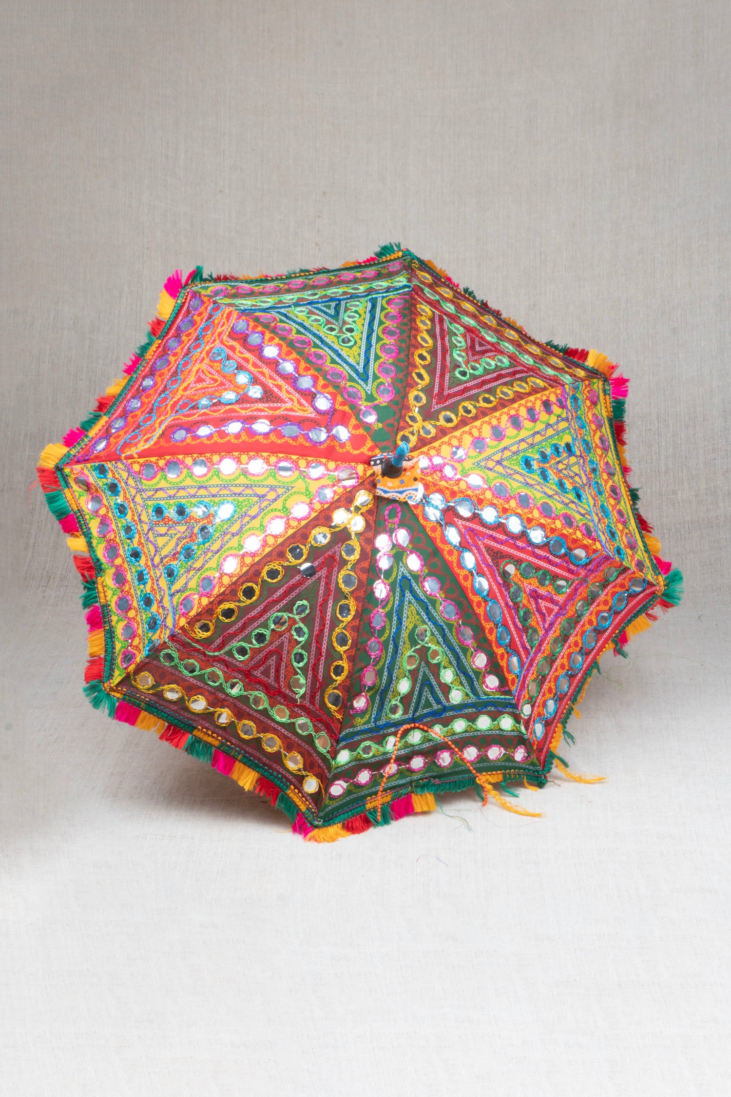 Spice up your sunny-day style with this Vibrant Vista handmade round umbrella! Crafted with colorful Indian fabrics, it gives you sun-shading shade with a hefty dose of culture. So leave the boring umbrellas at home – make your vista vibrant! (#fancy)